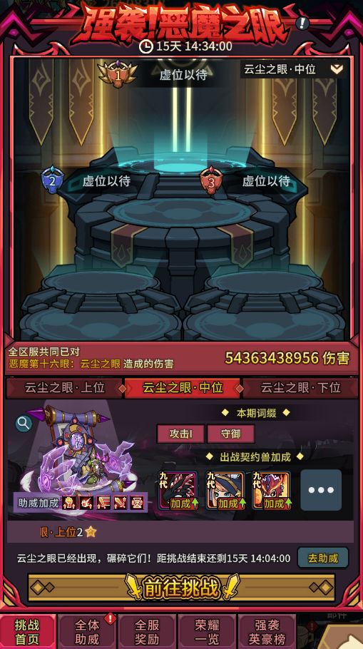 全员助威,迎战恶魔第十六眼:云尘之眼,参与排名获得奖励。