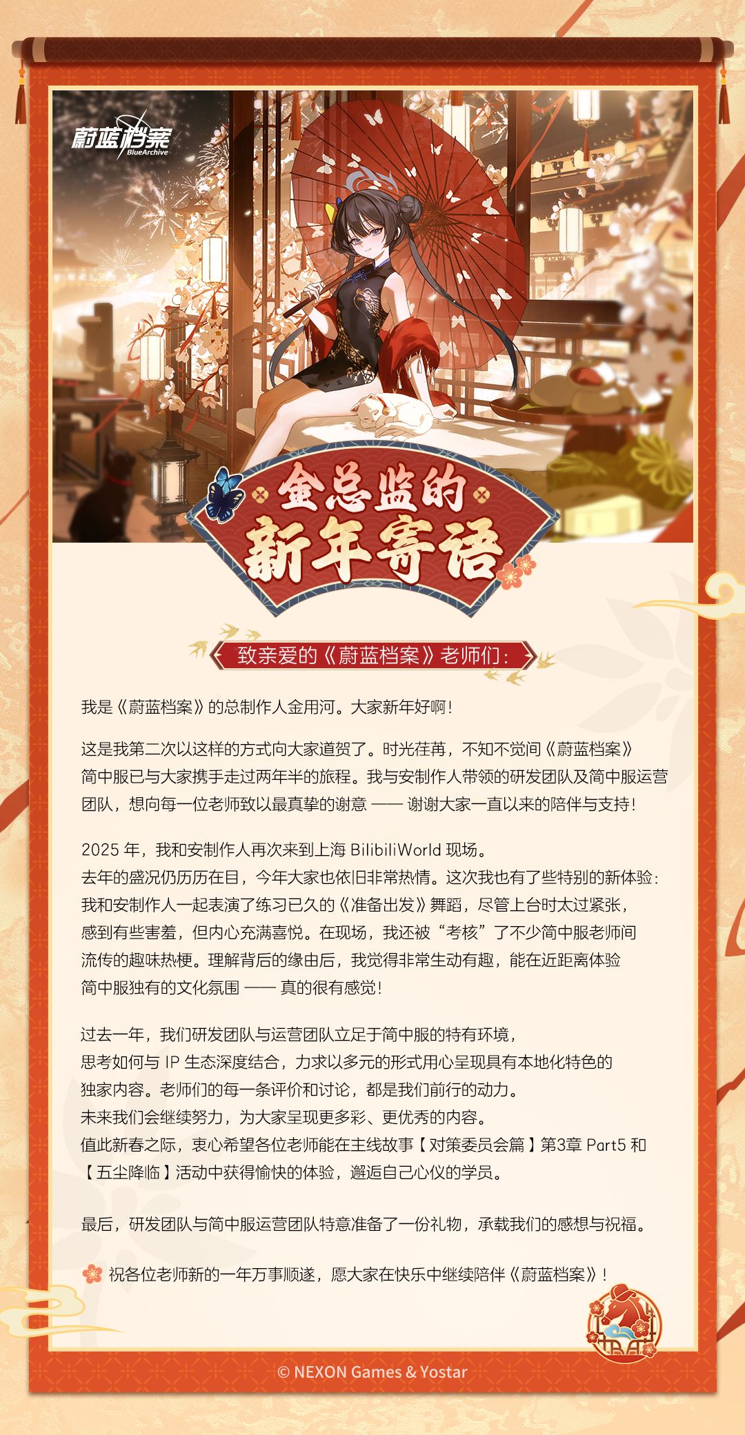值此佳节之际,《蔚蓝档案》总监金用河再次向老师致以节日问候!