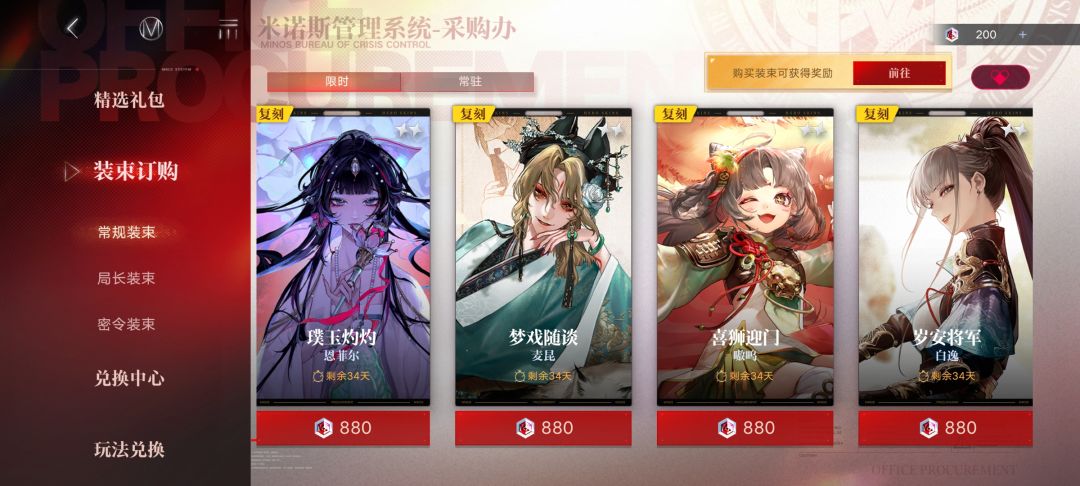 图上四个皮肤为联动皮肤复刻。