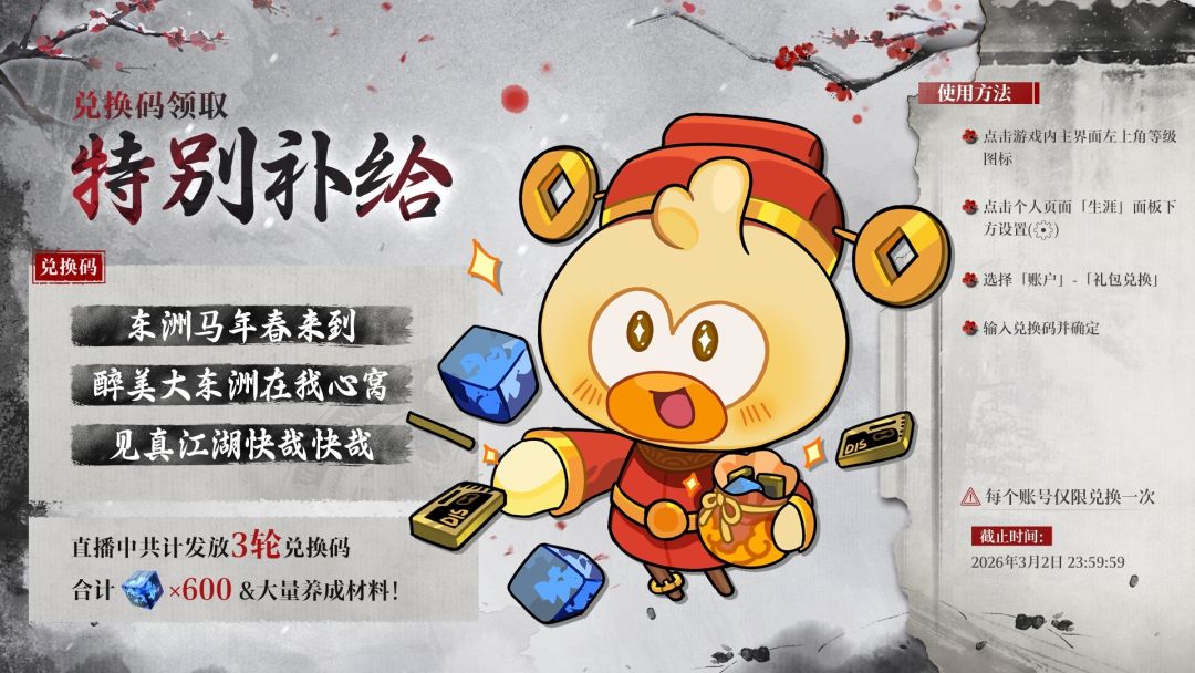 新年兑换码(26年3月2日凌晨过期)