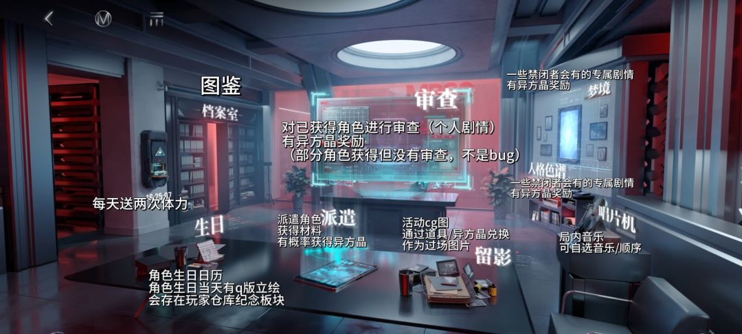 管理局:禁闭者个人剧情/图鉴/派遣/音乐/生日。