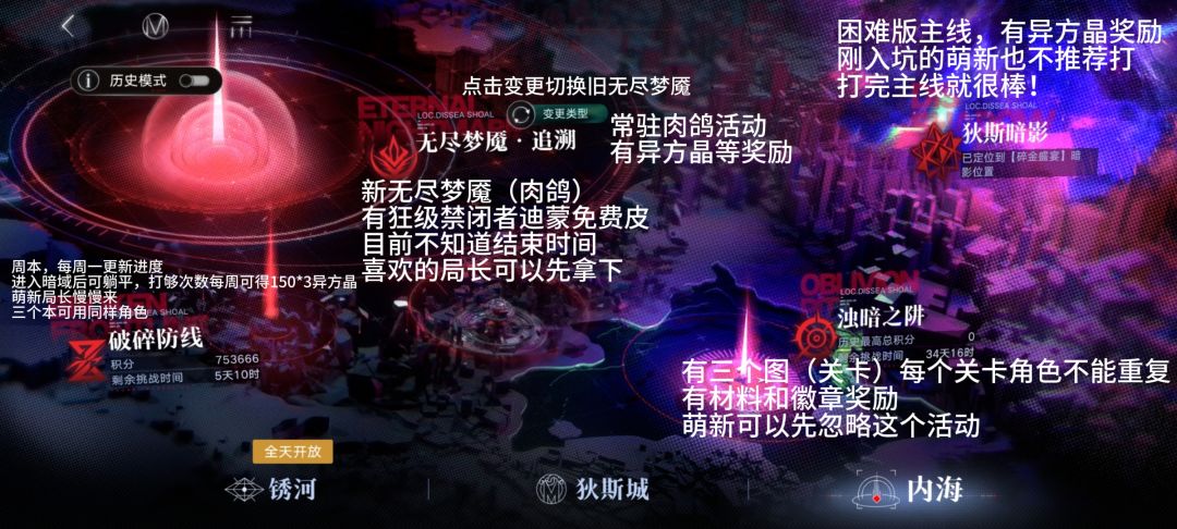 狄斯暗影:高难版主线,萌新可先不做。