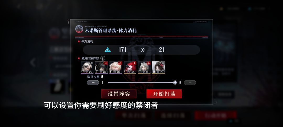 可以选择你需要刷好感的禁闭者进扫荡阵容。