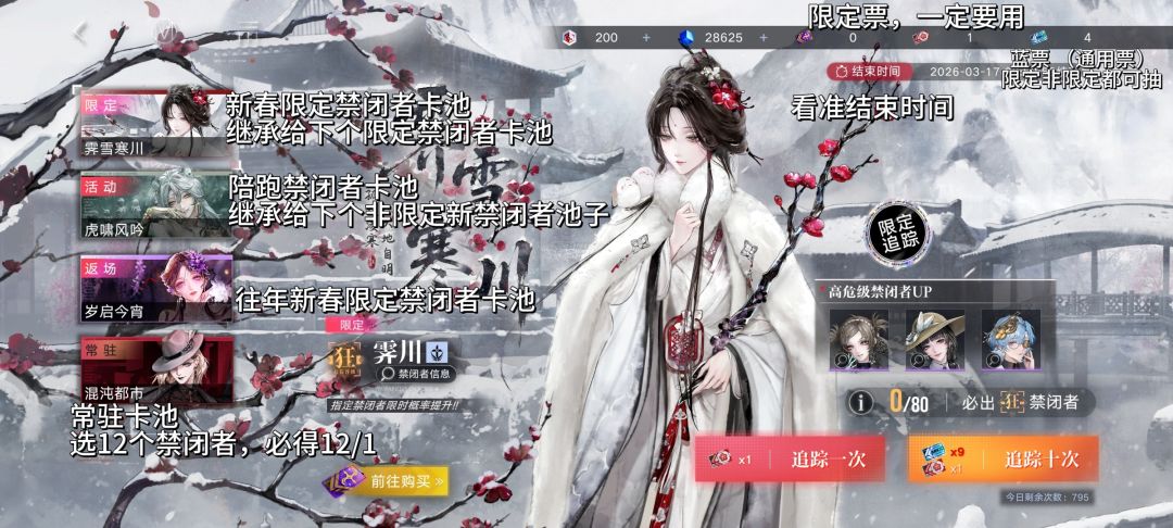 限定禁闭者up池:周年庆/春节版本出限定禁闭者。