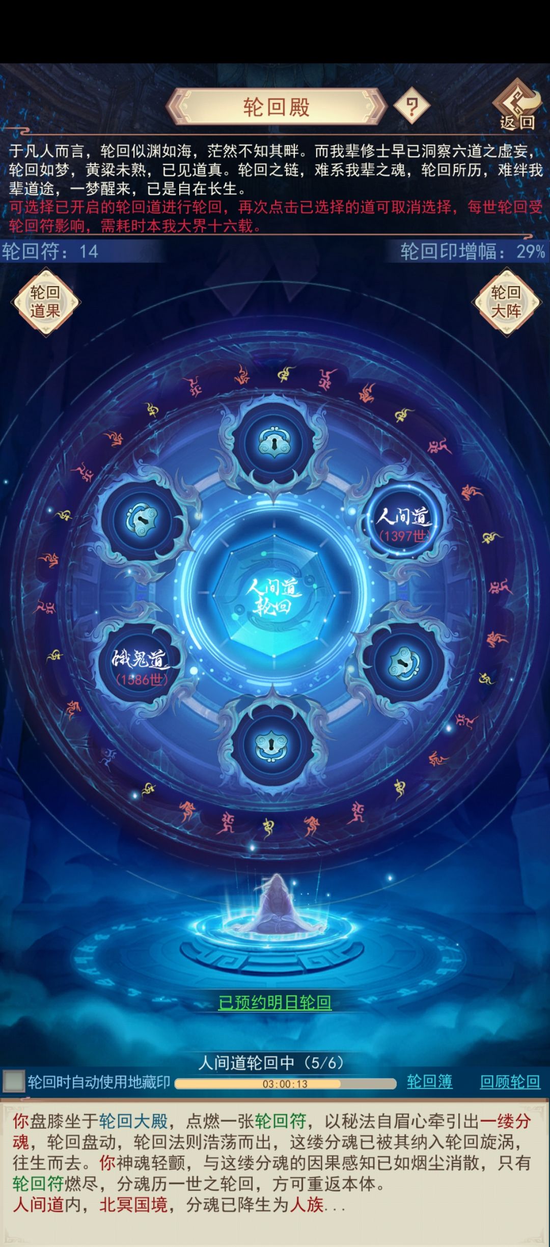 还有一个月轮回阵道果就上限了,开新的道啊。