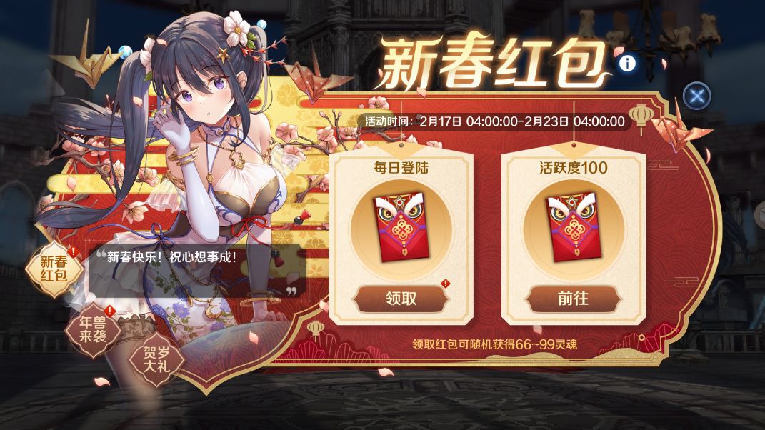 新春红包福利活动将于2月17日4:00:00开放,可领取新春红包。