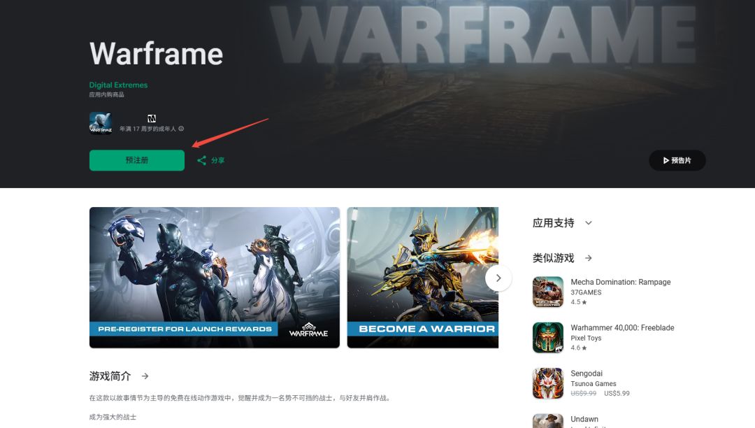 1. 点击打开→Warframe谷歌链接
