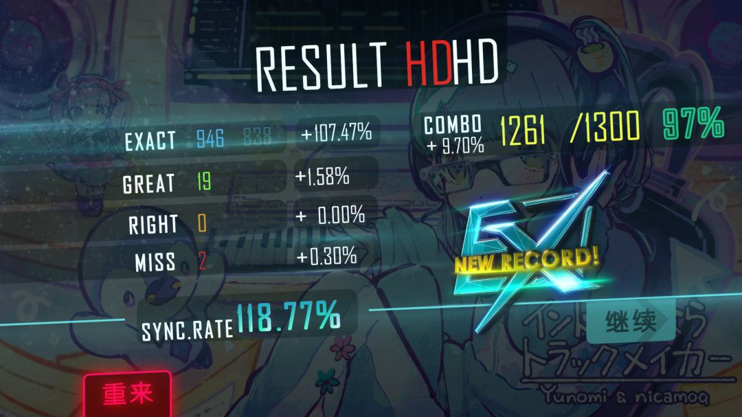 还有就是原先卡我手的低难度(虚低难度)也可以EX,FC甚至考虑上个色了
