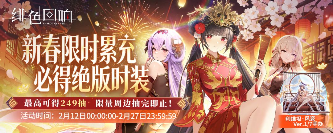唤醒者们好呀,新春将至,兔兔为大家带来了新的好消息!《绯色回响》全新限时累充活动上线啦,最高可得249抽,限量利维坦手办抽完即止!