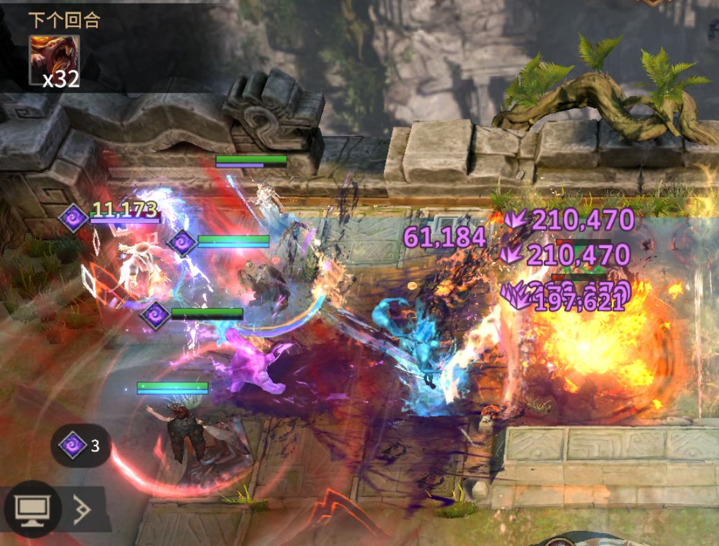 另外就是每隔3秒可召唤“小人”召唤物,绿色是单体伤害,但每次攻击可提升自身、巨像5%伤害,能够提高伤害上限(范围内只有1名目标时召唤);蓝色小人可以打群体伤害。在巨像攻击范围内,蓝、绿小人攻击可忽略目标25%魔抗、为巨像提供微量回血,能够补充一定输出。