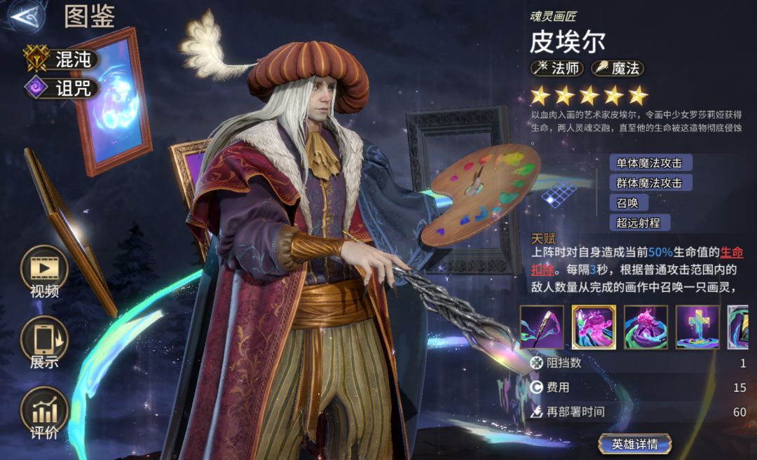 皮埃尔的技能机制比较有趣,我们就简单做个介绍。画灵:自动释放终结技,可准备一个巨像(自行放置),巨像普攻可以一次打10个。比起通过终结技打伤害的群法英雄,巨像可以持续输出,更适合群体竞技场、泰坦3这种场景。