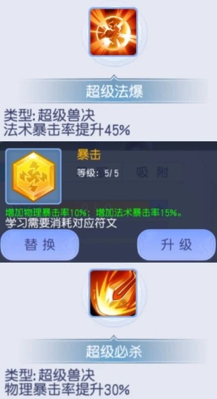 在当前版本中,暴击率极高,得益于装备炼魂、神赋暴击以及重阳宫天赋技能的加持。宠物的超级技能和坐骑加成,使物理宠物暴击概率达45%,法术宠物更是高达60%!