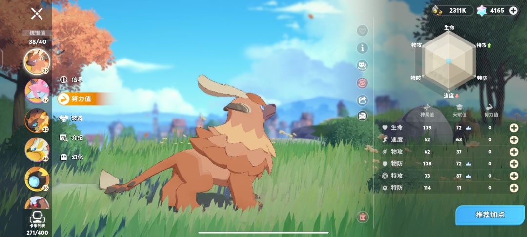 大家好,我是6区的呆呆球球,游戏UID25287,新手开局建议优先选水系主宠或者火系都可以,主线道馆打不过的话在一图野外抓一只岩灵兽打打寄生流,技能配置如图,努力值建议拉生命和物防各500。铁臂冠军和闪灵妖也很强,但是比较吃技能配置,配置如图,铁臂最好要有心眼一击,没有的话前期就先用岩灵兽。还有一点就是新手经验不够用,去农场种地换森林蛋糕配方,建议直接种紫色蛋糕的那几种菜性价比最高,前期新手优先把地皮买满,这样经验就没有那么缺了。咖啡店建议前期开荒只打技能松饼,其他的都很亏。还有一点就是道馆困难能打就尽量早点打,后面困难模式馆主每天可以打一次,奖励是20钻和宝箱(有几率开到当前图宠物蛋)。