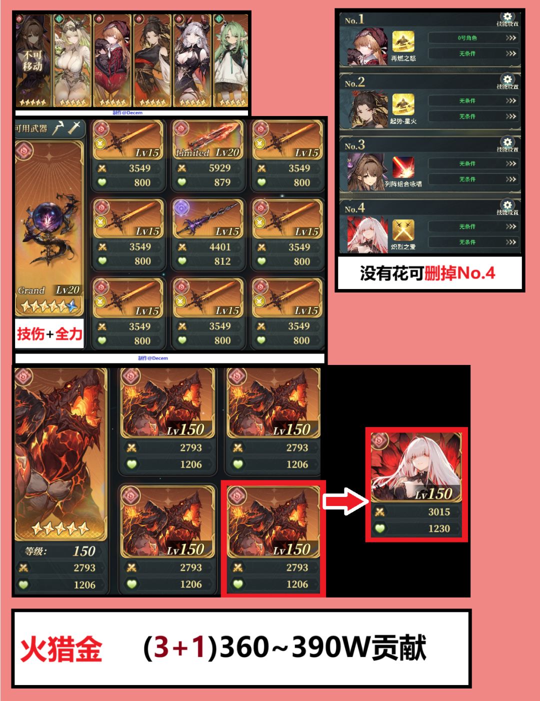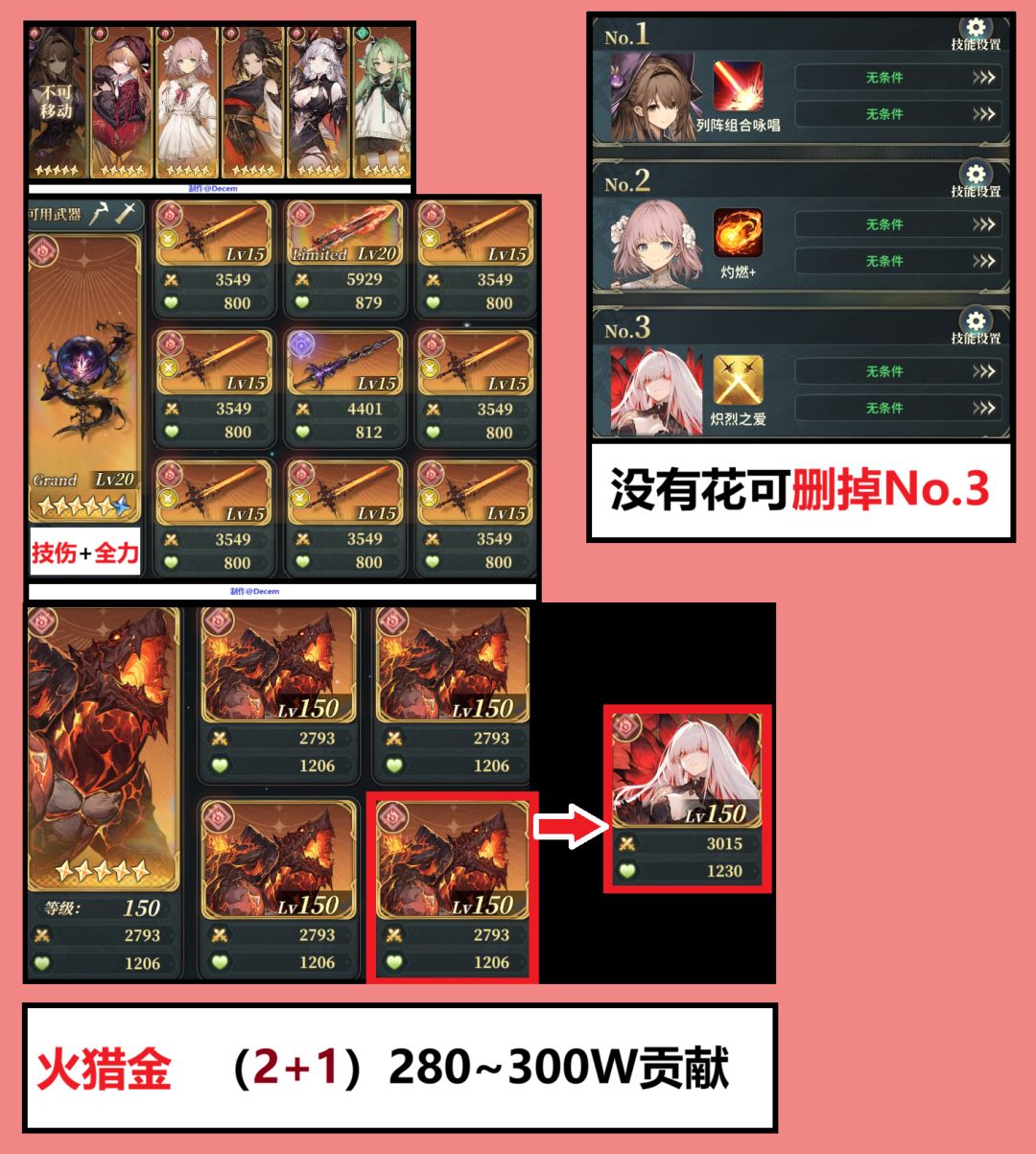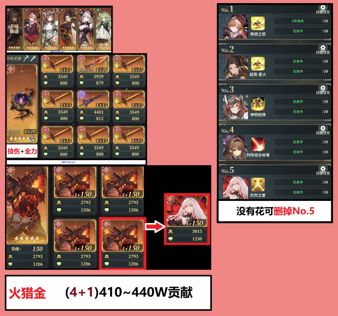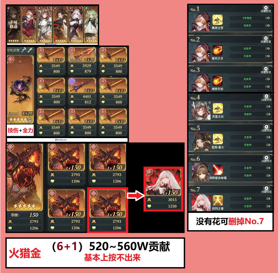 本文将为大家提供在不同环境下的各种火方猎金队伍配置(主要是技能数量排轴上的区别)