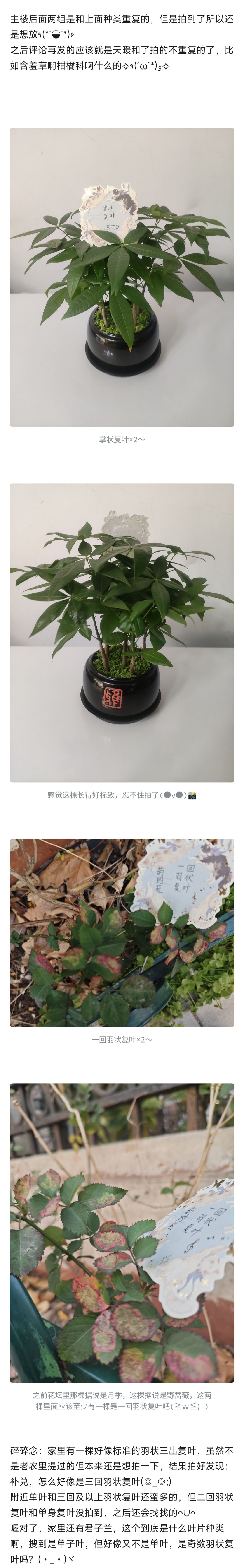 碎碎念:家里有一棵好像标准的羽状三出复叶,虽然不是老农里提过的但本来还是想拍一下,结果拍好发现:补兑,怎么好像是三回羽状复叶(◎_◎;)