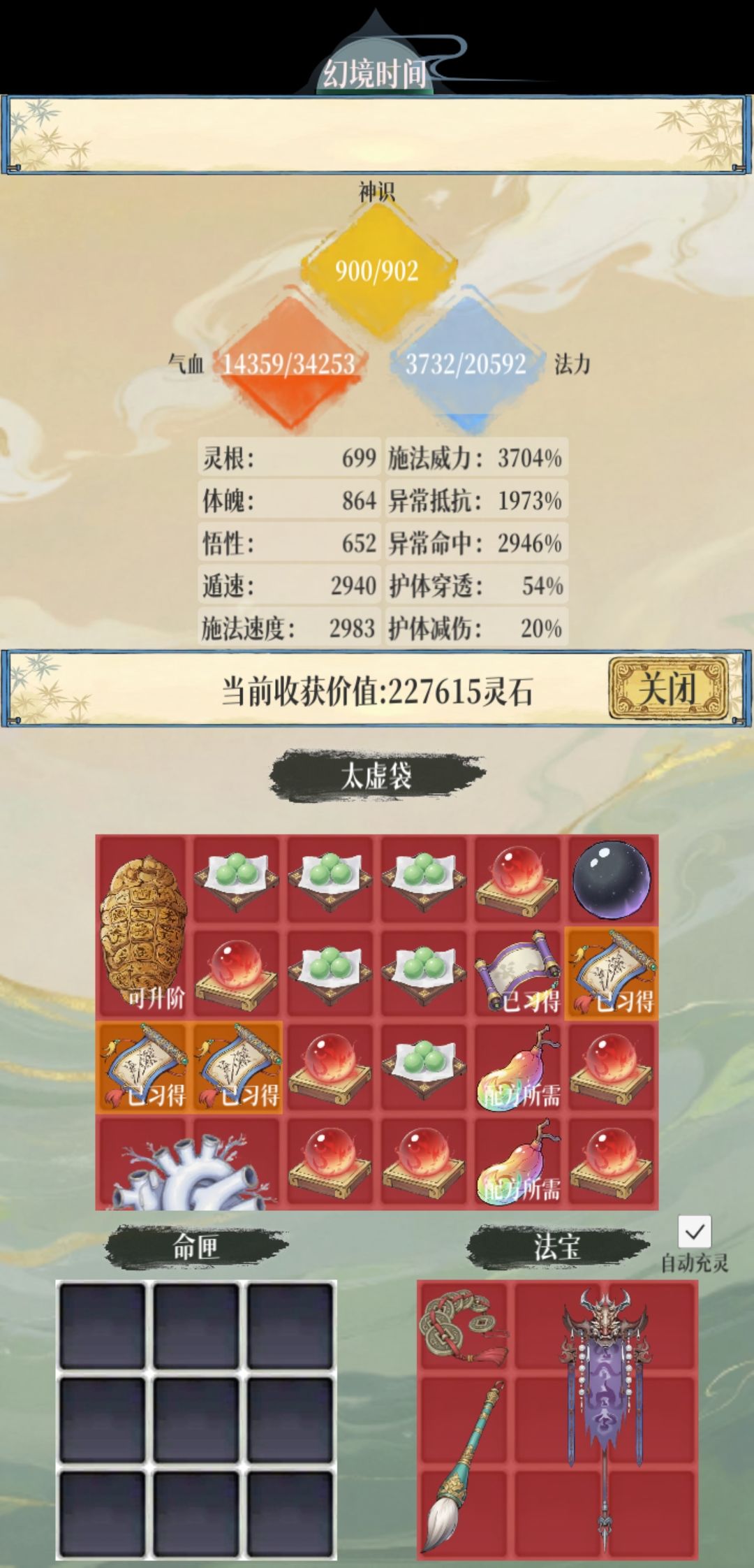 还有一个没截图,前中期有点肝,还有好多寿元丹没吃,寿命用不完根本用不完