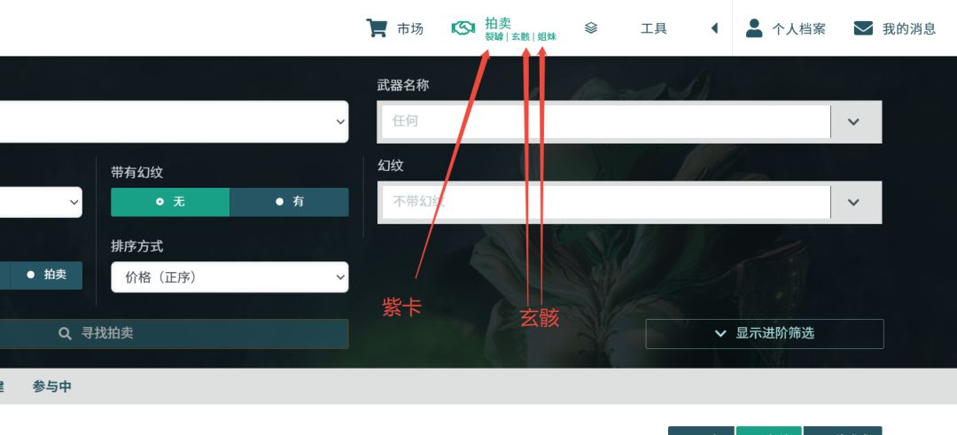 3. 点击右下角“WM集市”进入“Warframe Market”网站。