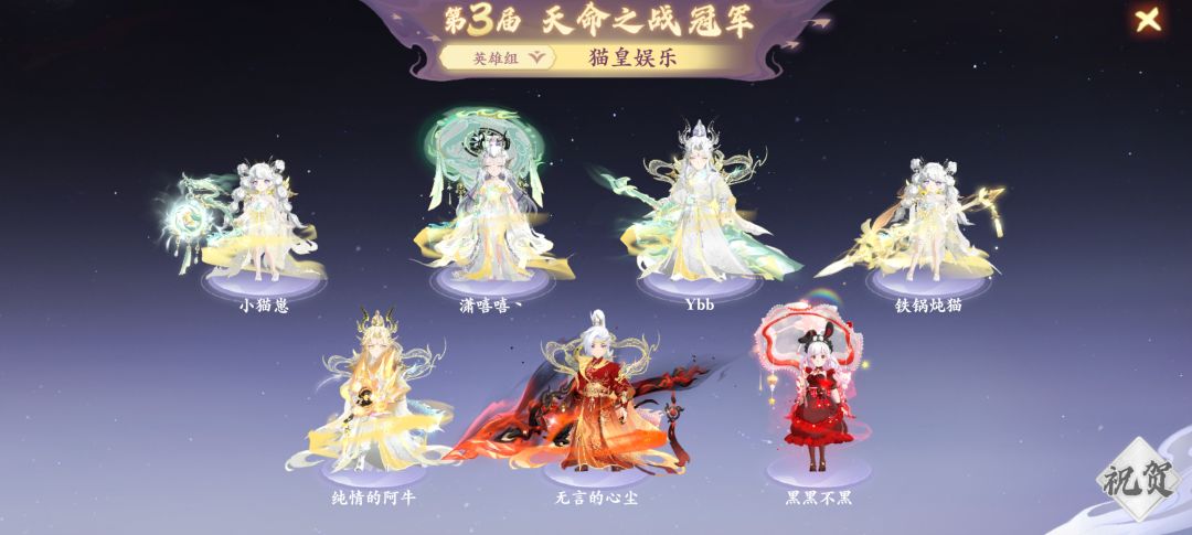 恭喜第三届天命之战的三支冠军队伍!也感恩每一位参战天命人的精彩表现~