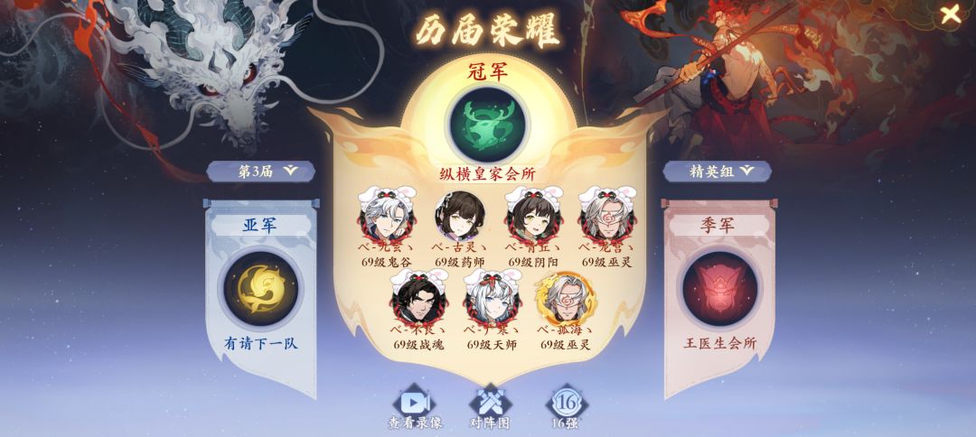 - 第三局:阴阳、医仙、药师、战魂、巫灵。