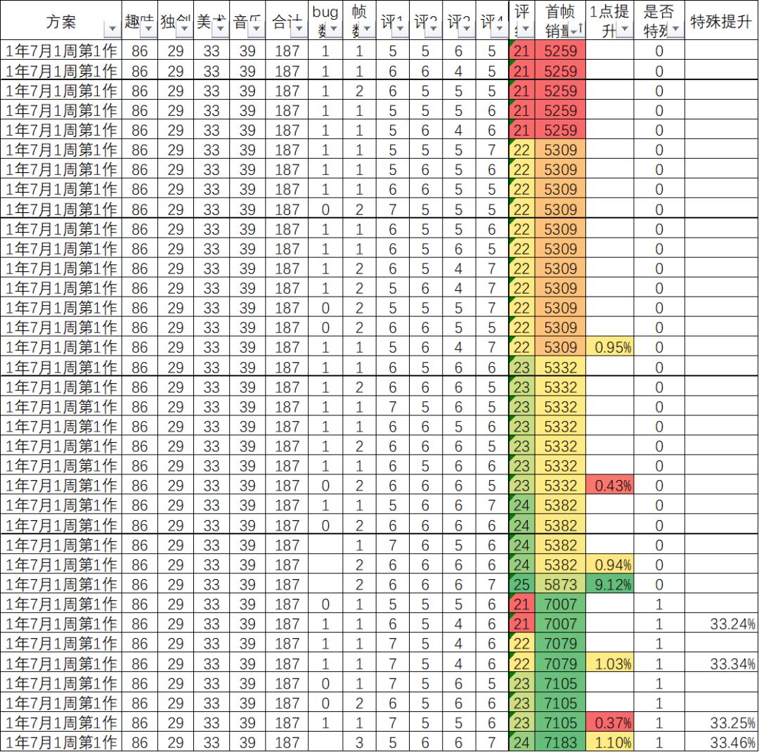 为了验证具体原因,细化了一些对比项,不过仍然没有发现可操作对比结果,只能看首周销量了,具体结论如下