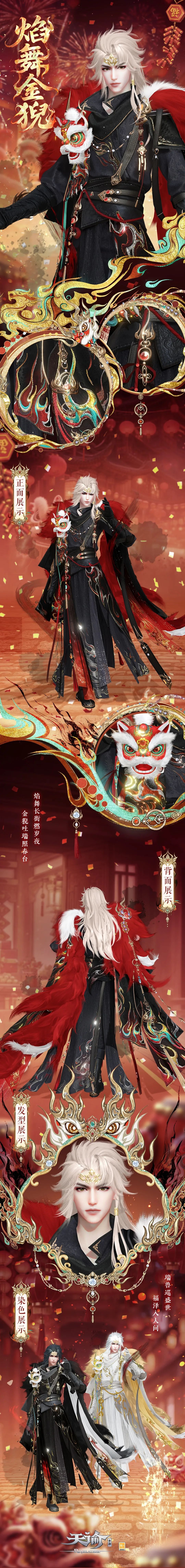 焰舞长街燃岁夜,金猊吐瑞照春台。。 ——时装“焰舞金猊”上线!