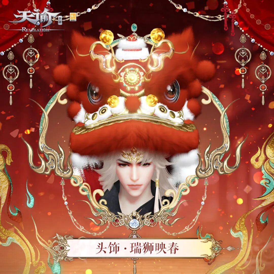 3.【外观】上新织梦品质时装【焰舞金猊】、发型【锦华焕岁】、头饰【瑞狮映春】、悬饰【鸿福满堂】、绕身特效【丹彩腾祥】、坐骑【吉兽迎禧】。