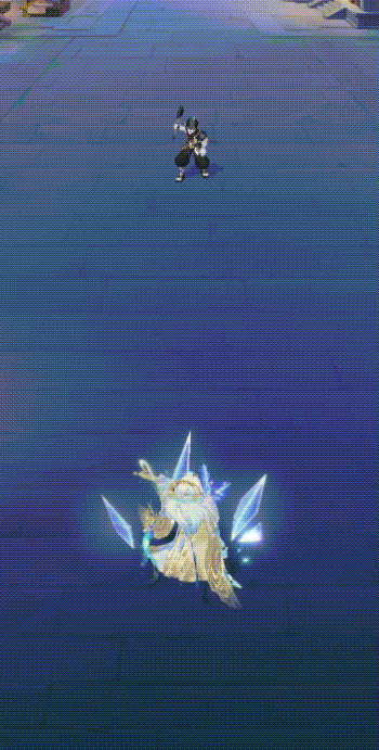 *注:时装「云上宫阙」分为一阶与二阶形态,通过将一阶形态升阶获取二阶形态。(图①:一阶 | 图②:二阶)
