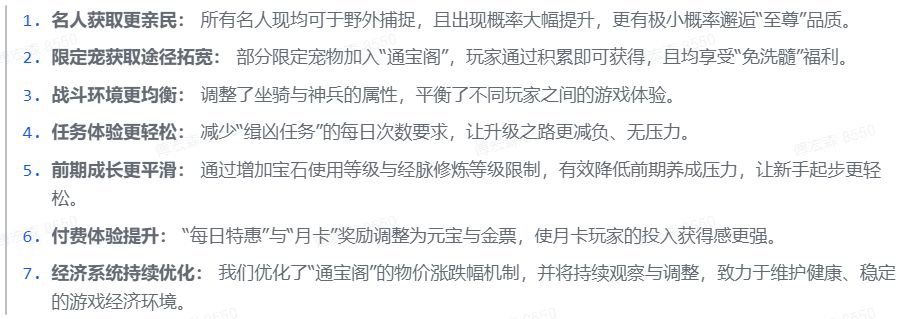 2、认真倾听大家的声音。玩法优化、门派平衡…重大改动都将开放反馈通道,和大家一起讨论;