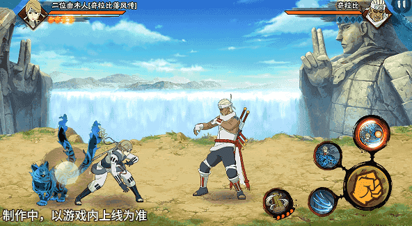 落风传由木人会与身边的尾兽又旅协同作战,点按释放二技能:尾兽连携,落风传由木人指挥又旅扑向前方抓取敌人,爪击敌人后接一记甩尾。