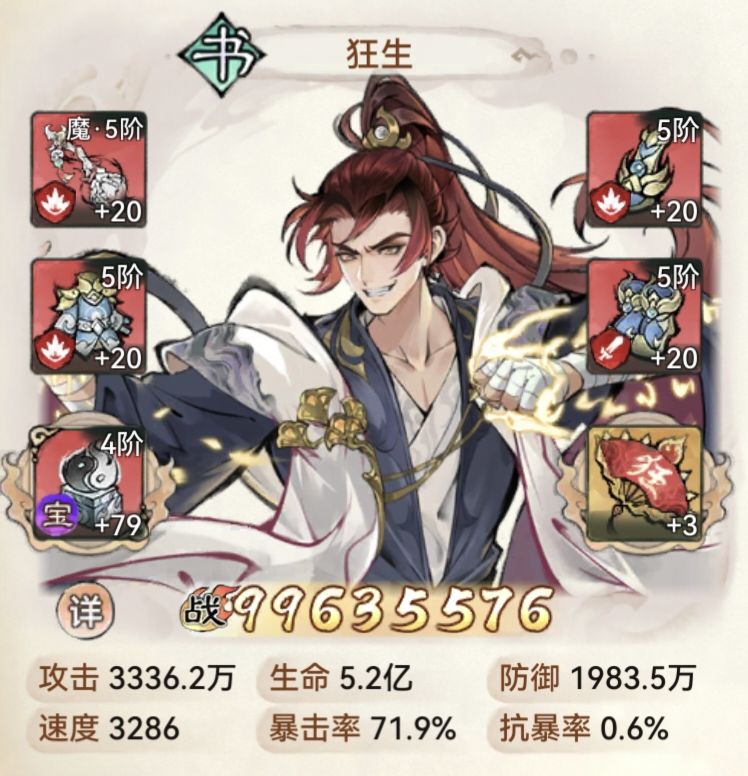 这是未拉满、普通氪度的狂生,10%生命约1.55倍攻击