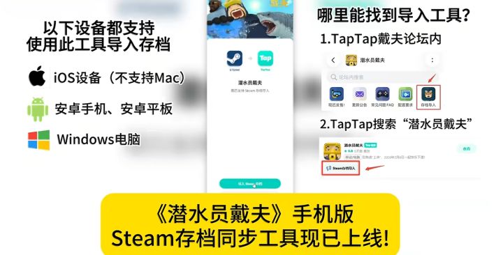 今天,《潜水员戴夫》官方宣布,TapTap手机版戴夫PC存档一键导入工具正式开放使用,玩家可将Steam端游戏存档一键导入至手机版。