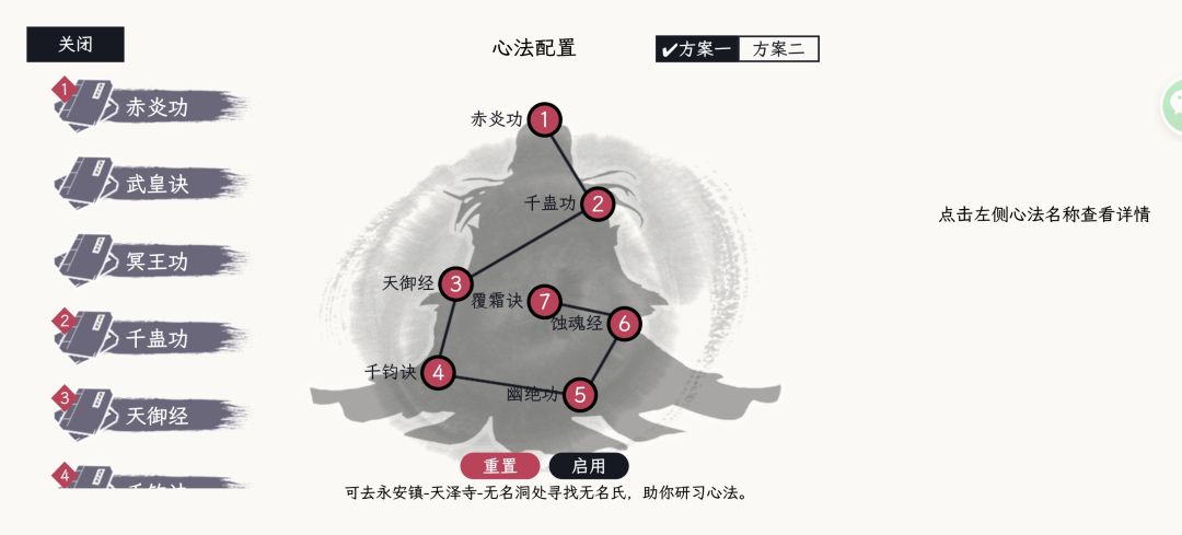 先说技能配置,所有技能都可以在永安镇-天泽寺捡,等级到了学就行: