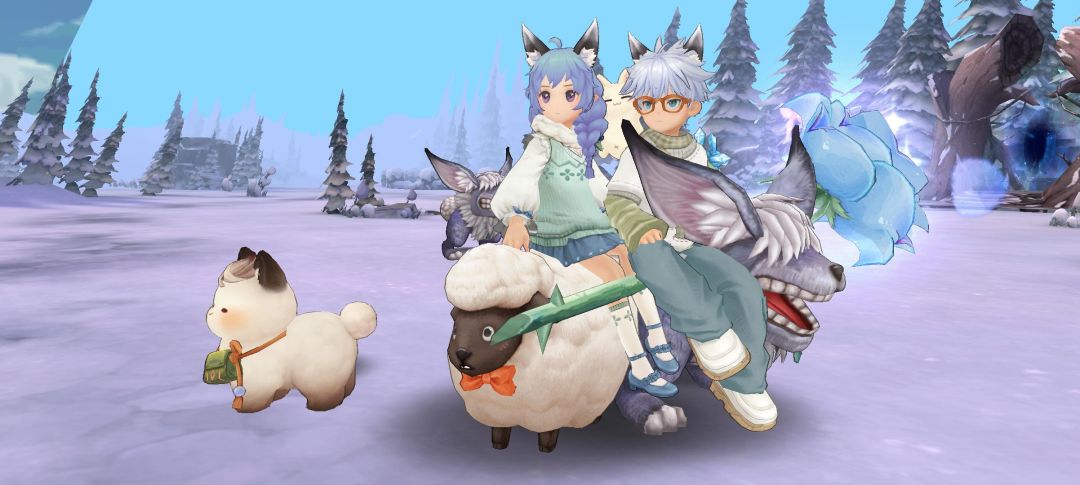 图四穿模了,趁机骑上座狼,追击小绵羊。