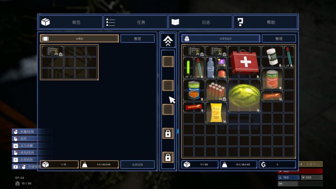消耗道具除了各种桌子货架上可以捡到外,再就是各种垃圾桶、金属箱、柜子之类的,在道具界面的最下面有个全部拾取,不过背包的容量空间是固定的,需要好好规划一下,在之后G币后也可以在终端处购买。