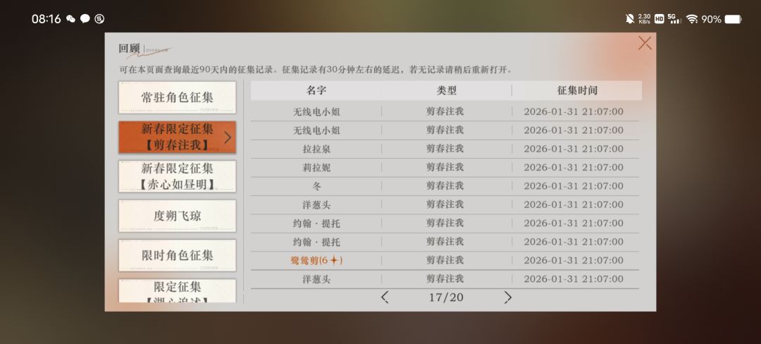 登录的第六天了(兔子和雨滴只用来抽限定池)……今天免费池终于出六星了结果给我歪了告死鸟这么个玩意儿