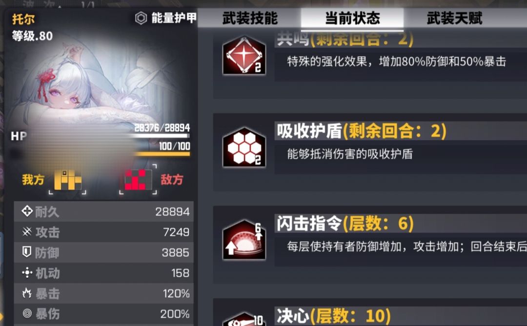 再说240防御的部分,240防御为局外防御,可以享受局内的%加减防的影响,并且这个防御为光环,即队友重新入场(召唤出的机神、角色死了复活、同调出的新角色)也能享受这240防御,只要瑞泽没死就行。