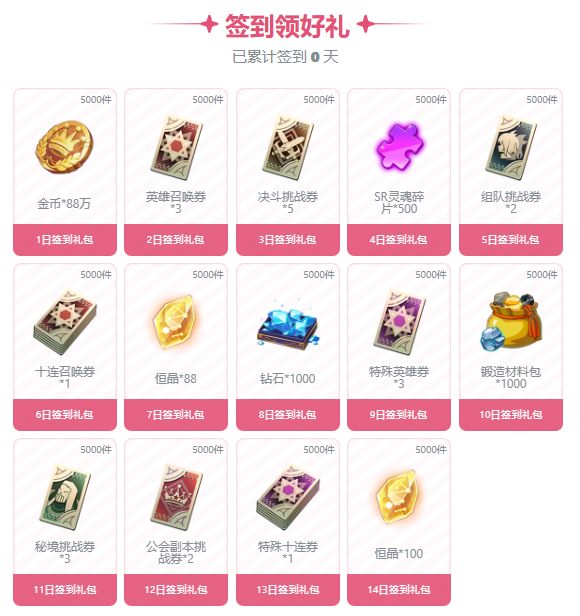 签到奖励一览: