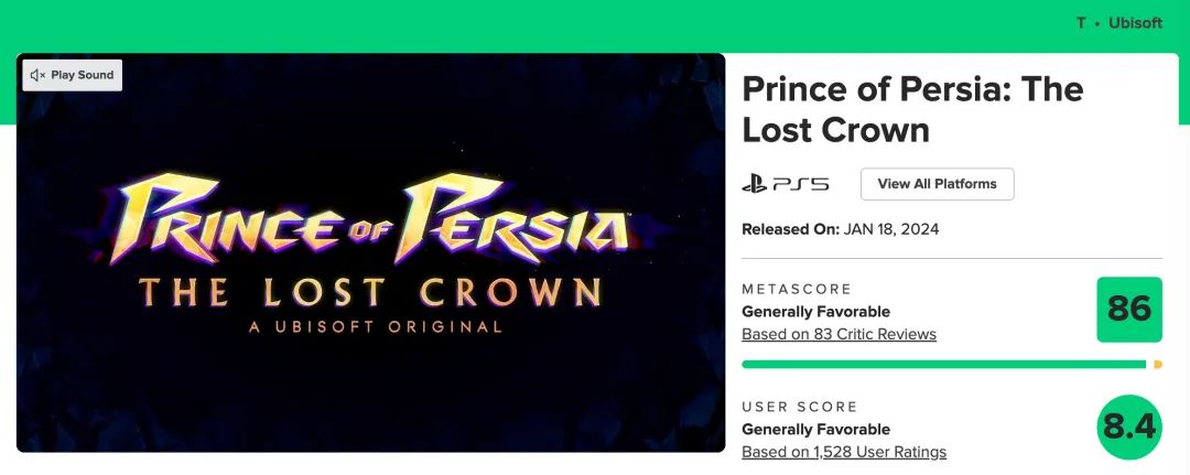 Metacritic媒体分88,育碧近五年来最高分的游戏。