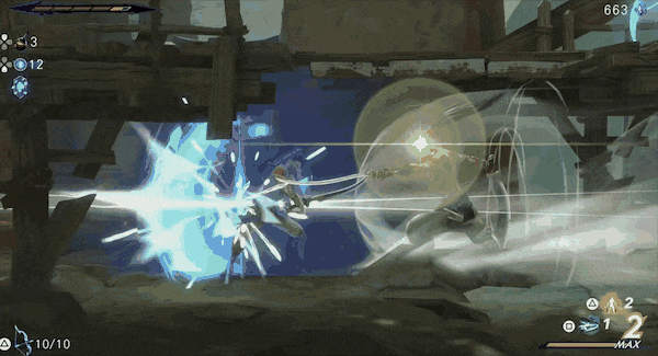 游戏的高端技巧,就是运用这套街舞一样的灵动的刀法,配合弓箭,打出一套华丽的浮空连,颇有一种2d版鬼泣的味道。