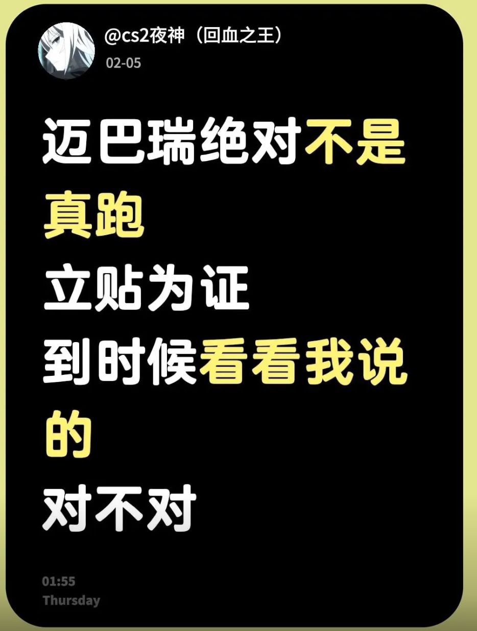 “迈巴瑞绝不是真跑路了!立帖为证!”潜台词:等回过头来打你们的脸!