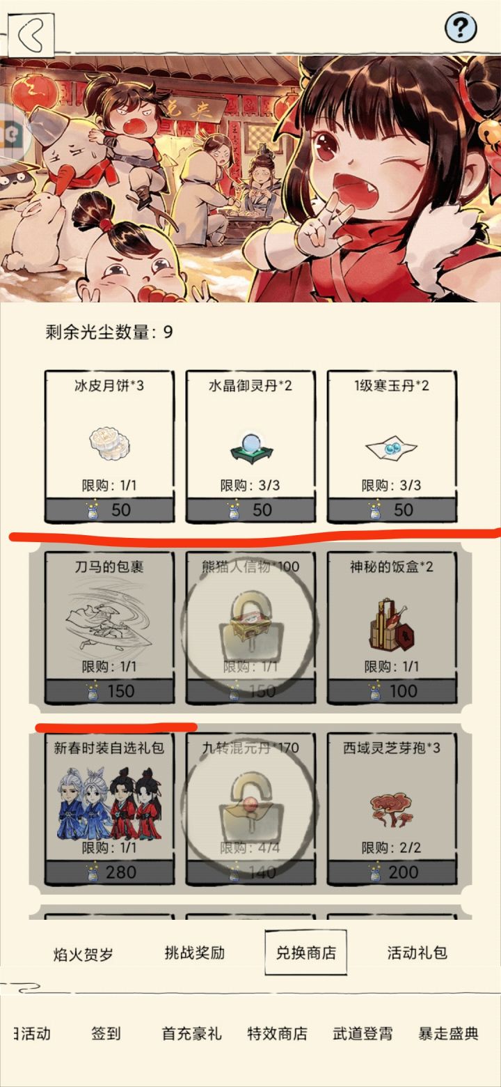 额外备注:300金条包裹没有任何意义,即使你漏点几天也几乎能得到200材料,你肝成🐶也达不到3档也拿不到二档熊猫人。而100熊猫人≈16组熊猫≈300~400金条。你买一次材料也不可能多50个出来,否则是可以拿熊猫人回本的(来自xf的恶意)