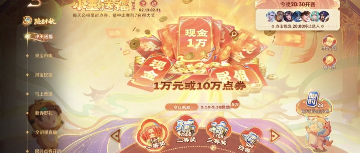 王者限时点券活动中奖之后会有福气码,可以分享给别人领取不同额度的限时点券!