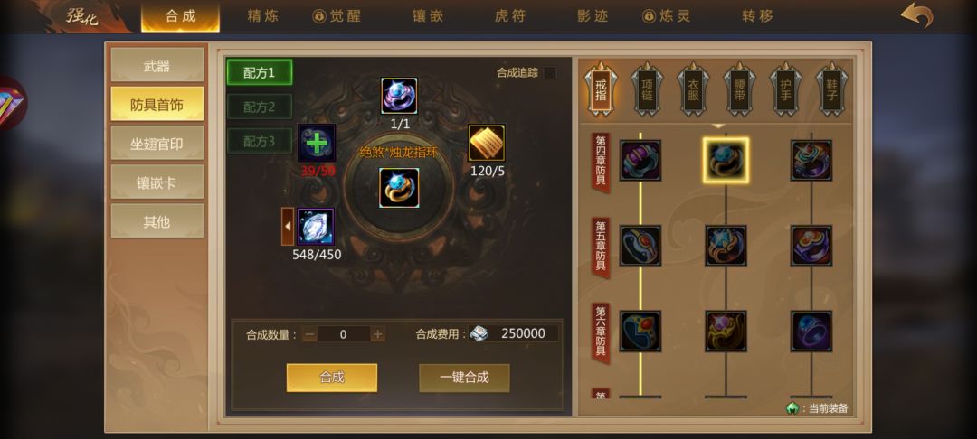 为什么有合成卷轴有装备,没有合成选项?