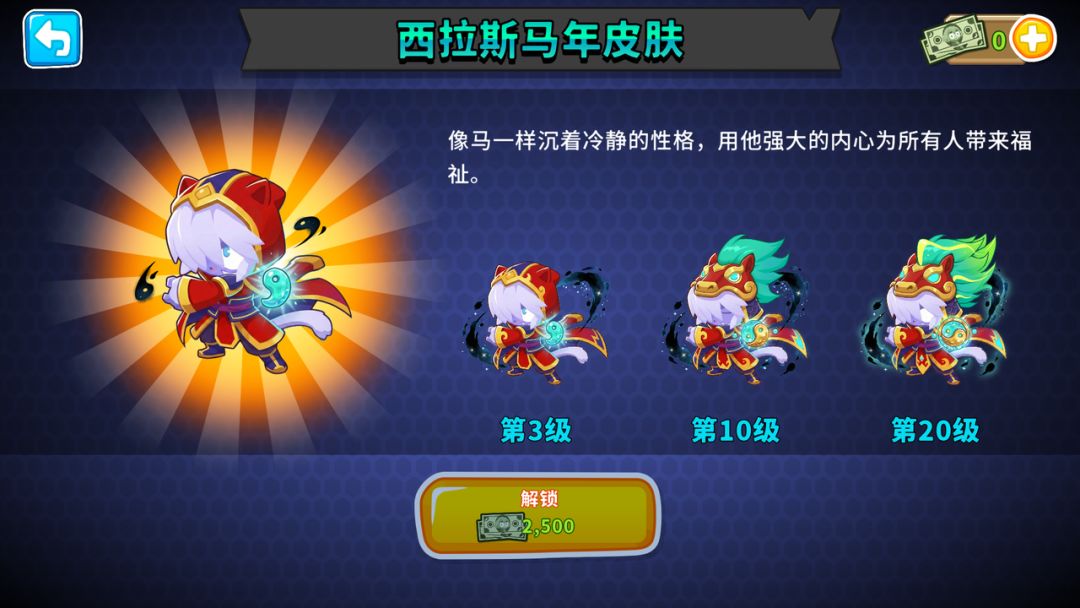 【西拉斯马年皮肤】可以通过猴币解锁,也可通过西拉斯马年皮肤礼包直接购买,礼包内包含:西拉斯英雄、西拉斯马年皮肤之外,还会包含西拉斯马年横幅、头像,以及专属放置特效。