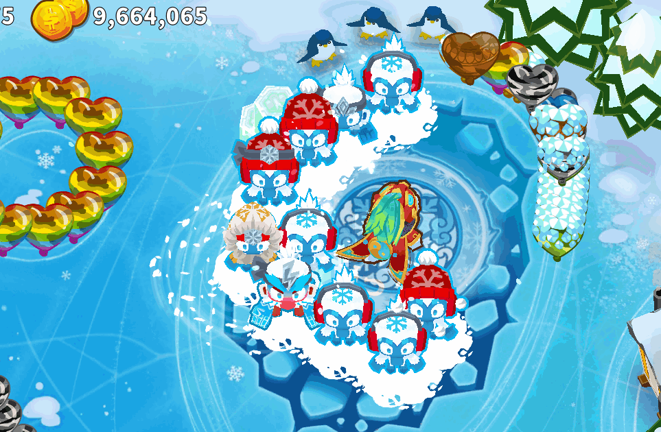 ——10级技能 冰冻埋葬:立即冻结所有气球,并对其造成伤害。对已冻结气球造成额外伤害,随后在路径上生成冰墙。