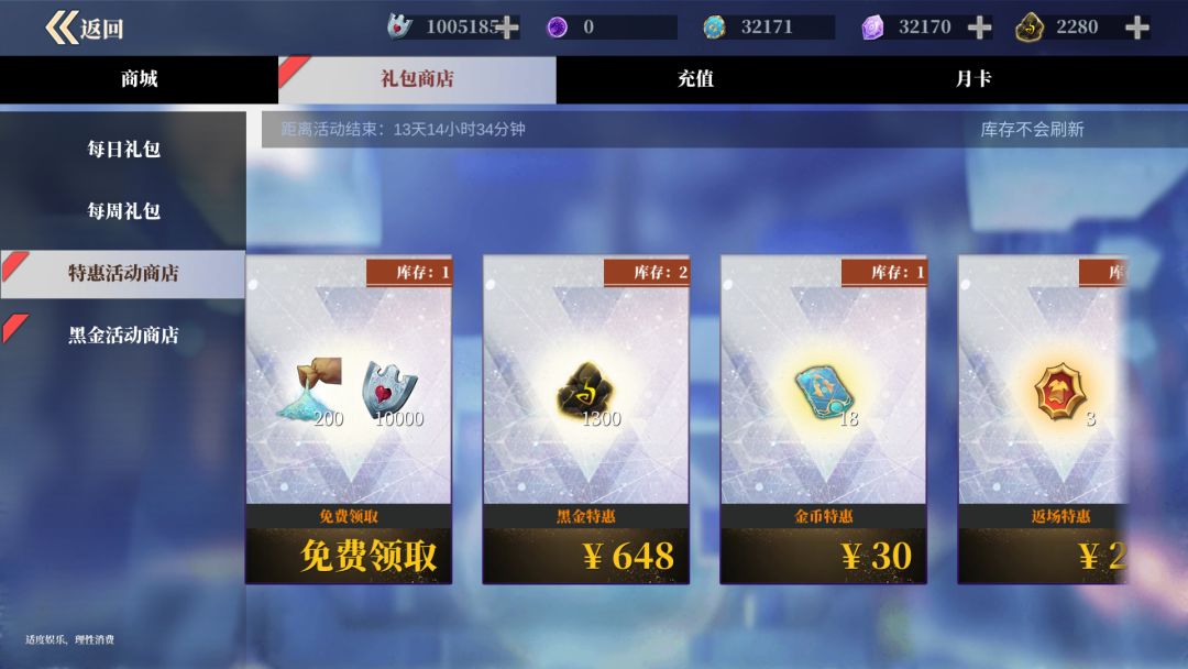 获得的活动道具可以在「资源兑换商店」中兑换职业UP祈愿开启凭证、自选精炼符文&灵光符文、闪光粉尘和多种养成资源。