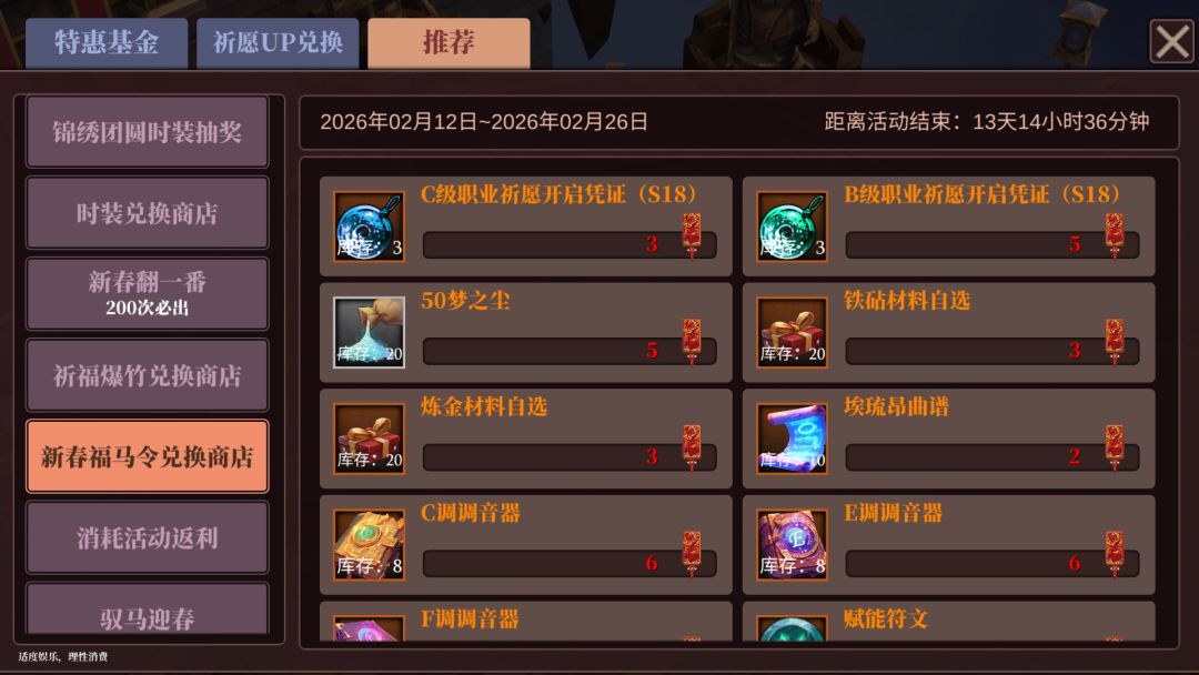 2月13日9点版本更新后,驭马迎春版本正式上线!