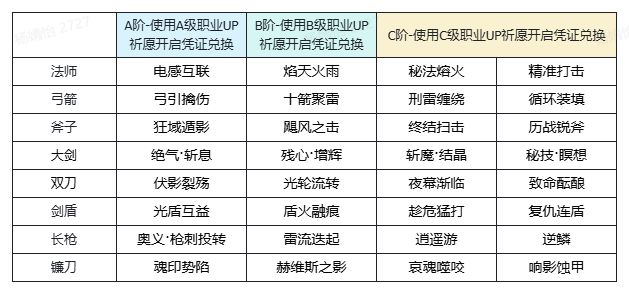 使用职业祈愿开启凭证可兑换各职业限时up祈愿(五期),特定垓伊斯之力出率上升!