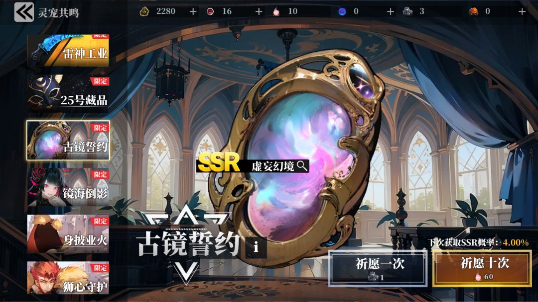 本期祈愿池的伴灵是——萝赛塔,伴灵共鸣【镜海倒影】开启,专武共鸣【古镜誓约】上线。