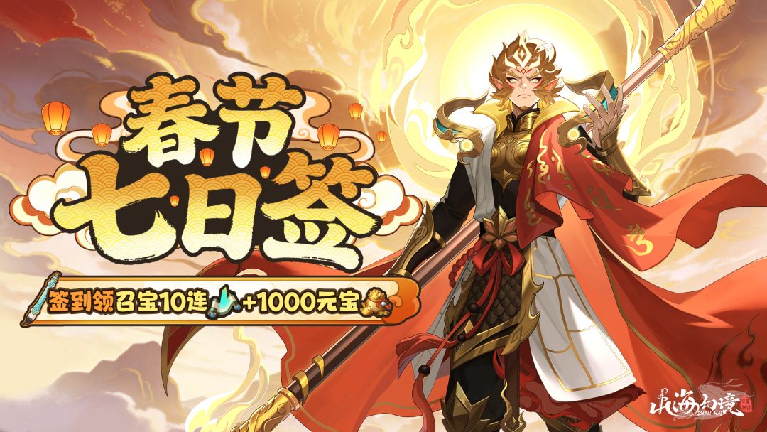 山海幻境-春节签到丨七日签到领10连+1000元宝